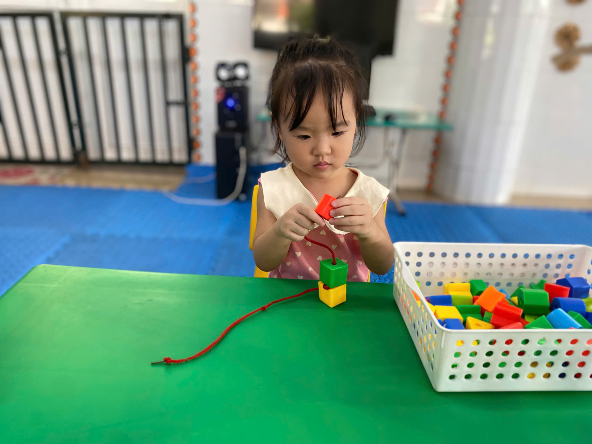 Thông qua hoạt động với đồ vật, trẻ được phát triển kỹ năng vận động tinh của bàn tay, ngón tay và sự phối hợp tay, mắt trong hoạt động, rèn luyện kỹ năng tự phục vụ như lấy và cất đồ dùng, đồ chơi đúng nơi quy định. Xâu hạt là một hoạt động giúp rèn luyện độ chính xác của các động tác và hoạt động của các ngón tay.