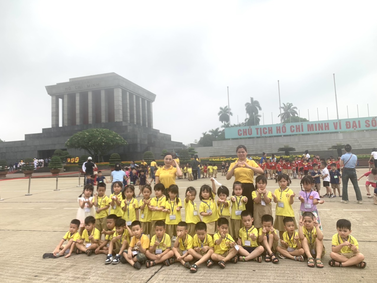 Từ sáng sớm, các bé đã nô nức đến trường thật sớm để chuẩn bị. Bắt đầu 7h30 xe chuyển bánh và 8h30 các bạn nhỏ đã đến được điểm thăm quan đầu tiên là Lăng Bác. Các bạn nhỏ đều rất háo hức và vui mừng được đến thăm lăng bác.