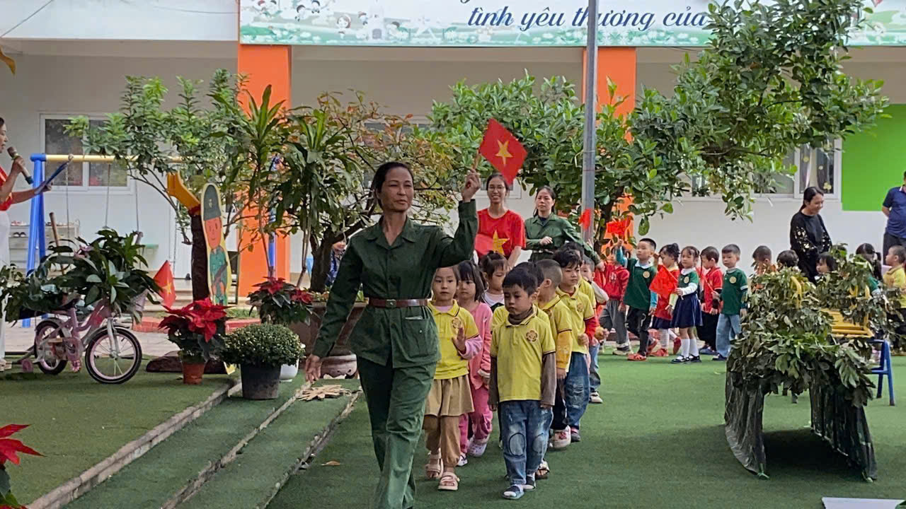 🌸 Mở đầu chương trình là các tiết mục văn nghệ sôi nổi, rộn ràng đến từ khối Mẫu giáo lớn, thể hiện sự hồn nhiên, trong sáng và niềm tự hào của các bé khi hóa thân thành những chiến sĩ nhỏ tuổi.