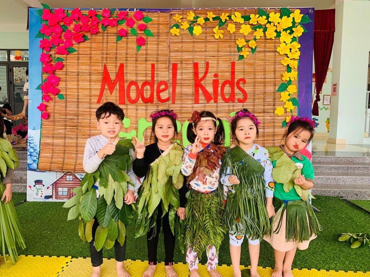 Chính vì vậy các cô giáo và các bé lớp MGL A2 trường Mầm non Phúc Lợi đã dùng những nguyên vật liệu phế thải để tạo thành những trang phục vô cùng đẹp mắt và sáng tạo.