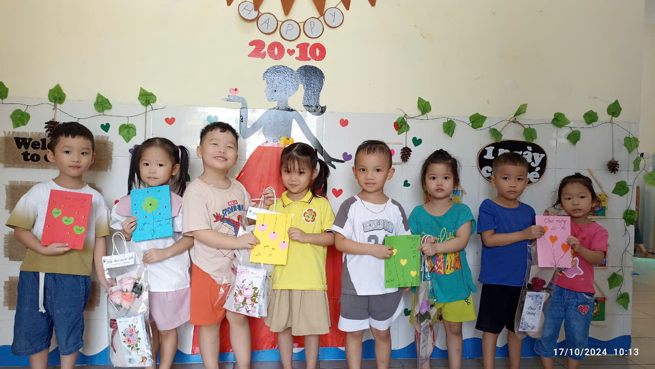Nhân dịp kỷ niệm 94 năm ngày thành lập Hội liên hiệp phụ nữ Việt Nam (20/10/1930 - 20/10/2024). Đây cũng chính là dịp để ghi nhận và tôn vinh cống hiến của phụ nữ Việt Nam. Hàng năm, vào ngày này mỗi con người Việt Nam sẽ luôn nhớ tới những người phụ nữ quan trọng trong cuộc đời họ. Để thể hiện lòng kính trọng, biết ơn với bà, mẹ, chị em gái của mình nhân dịp 20/10, các bé lớp 4 - 5 tuổi B3 đã tự tay trang trí những tấm bưu thiếp, thay những lời tâm sự, lời nhắn nhủ chân thành của bé lên tấm thiệp handmade dễ thương, và các cô giáo sẽ làm nhiệm vụ kết nối những trái tim.
