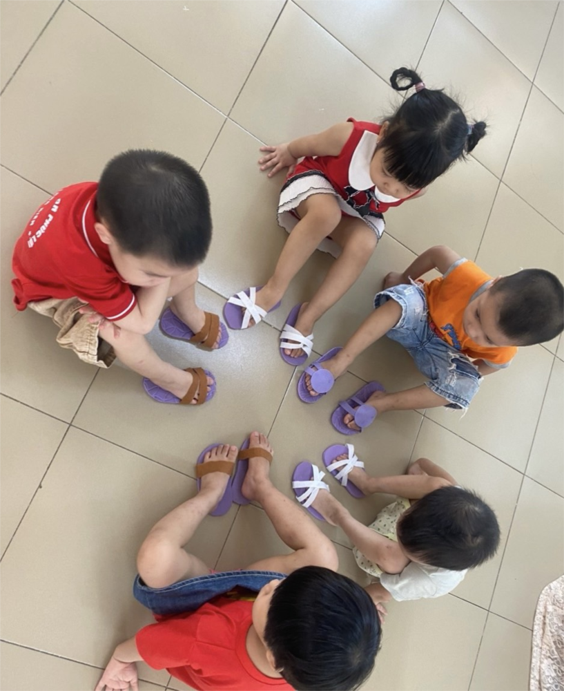 Hình ảnh bạn nhỏ tự cất dép khi đến lớp