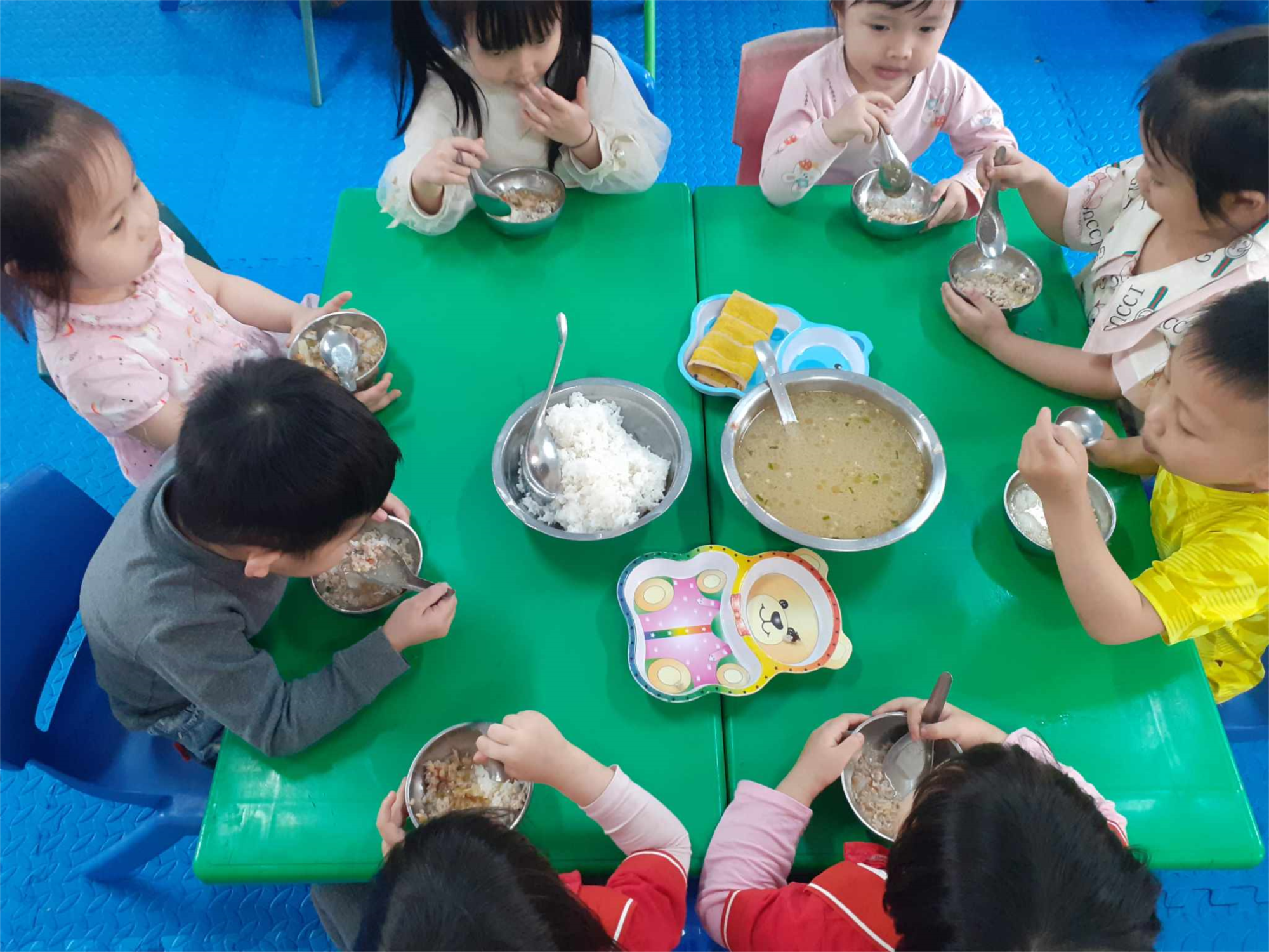 Tổ chức bữa ăn cho trẻ là một trong những hoạt động rất quan trọng trong các thời điểm sinh hoạt hằng ngày. Tổ chức giờ ăn trẻ sẽ được cung cấp cân đối các chất dinh dưỡng, ăn các loại thức ăn đa dạng phong phú. Giáo dục dinh dưỡng, kỹ năng tự phục vụ, văn hóa trong ăn uống cho trẻ.