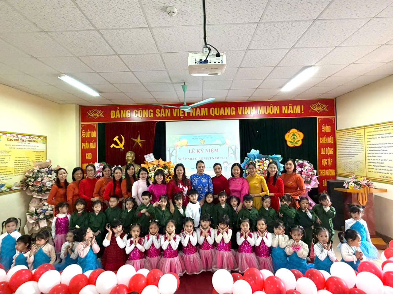 Sáng ngày 19/11/2025, Trường Mầm non Phúc Lợi đã long trọng tổ chức Lễ kỷ niệm 43 năm Ngày Nhà giáo Việt Nam (20/11/1982 – 20/11/2025). Buổi lễ diễn ra trong không khí ấm áp, rực rỡ sắc màu tri ân, như những bó hoa tươi thắm gửi đến các thầy cô – những người đang ngày ngày vun trồng những mầm non xanh.