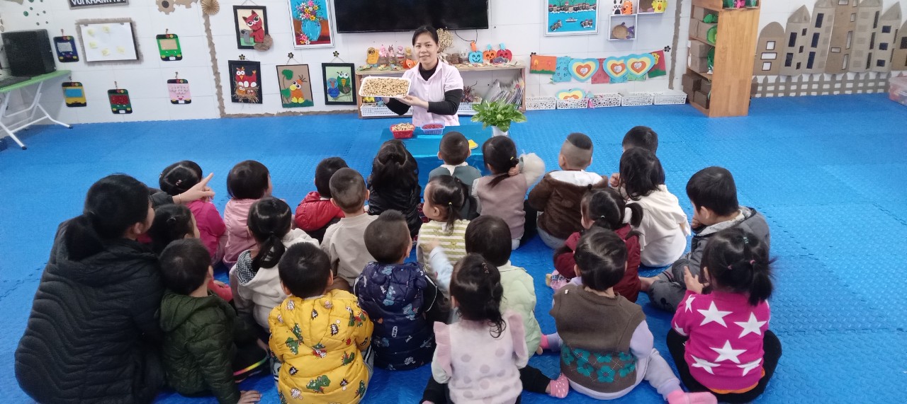 Lạc (đậu phộng) là một sản phẩm nông nghiệp được người nông dân trồng phổ biến ở khắp các vùng miền của nước ta. Củ lạc được mọi người biết đến bởi giá trị dinh dưỡng của cao, là loại thực phẩm tốt cho sức khỏe bởi lạc chứa một lượng lớn steroid thực vật, giàu chất béo và protein... Ngoài ra lạc còn là món ăn ngon dễ chế biến được nhiều món như: Muối lạc, đậu phộng, lạc luộc, lạc rang... Trong buổi tổ chức hoạt động trải nghiệm cô và trò lớp mẫu giáo bé C2 đã tổ chức cho các học sinh tham gia buổi trải nhiệm bóc lạc. Đây là hoạt động trải nghiệm mới nên học sinh vô cùng hào hứng và thích thú. Từ đó nhằm rèn luyện cho học sinh đôi bàn tay khéo léo, sự tập trung và sự kiên nhẫn đối với công việc của mình. Khi bóc lạc trẻ biết phân biệt và tách riêng riêng phần hạt và phần vỏ lạc.