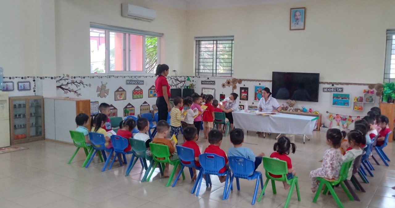 Một trong những việc làm để góp phần cho trẻ mầm non được phát triển toàn diện đó là công tác chăm sóc sức khỏe và nuôi dưỡng trẻ. Muốn cho trẻ được phát triển toàn diện thì trước hết phải quan tâm đến chăm sóc nuôi dưỡng, chăm sóc sức khỏe của trẻ. Ban giám hiệu nhà trường đã phối kết hợp cùng với Trạm y tế phường Phúc Lợi tổ chức chăm sóc sức khỏe, khám sức khỏe cho trẻ tại trường.