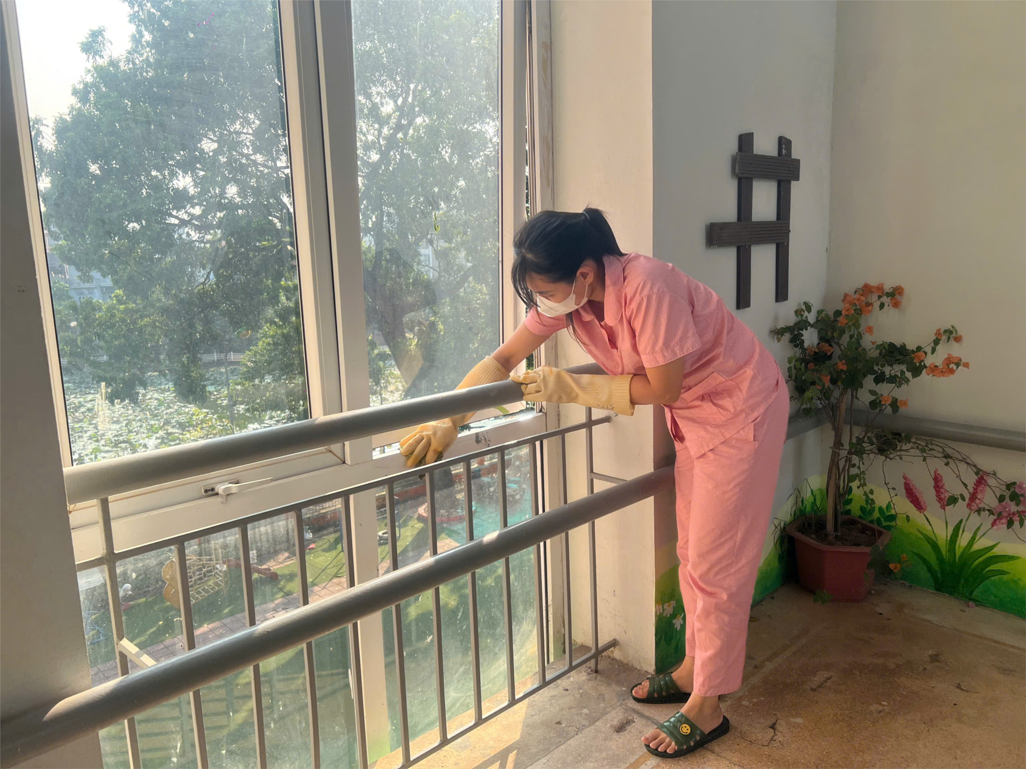 Vào mỗi chiều thứ Sáu hàng tuần, toàn thể cán bộ, giáo viên, nhân viên trong nhà trường lại cùng nhau thực hiện buổi tổng vệ sinh định kỳ. Với tinh thần trách nhiệm và tình yêu dành cho các con, mọi người cùng chung tay lau dọn lớp học, sắp xếp đồ dùng gọn gàng, vệ sinh đồ chơi, khu bếp, sân trường và chăm sóc cây xanh.