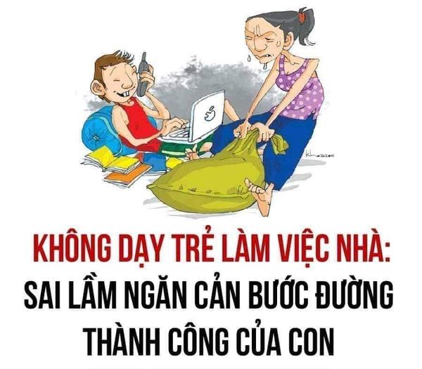 "Nếu hôm nay con bạn không làm việc nhà, đừng ngạc nhiên nếu sau này chúng gặp khó khăn khi làm việc chung với đồng nghiệp". Đây là thông điệp của Julie Lythcott-Haims, tác giả cuốn sách: How To Raise An Adult (Tạm dịch: Làm sao để con trưởng thành), đồng thời là cựu sinh viên của Đại học Stanford.