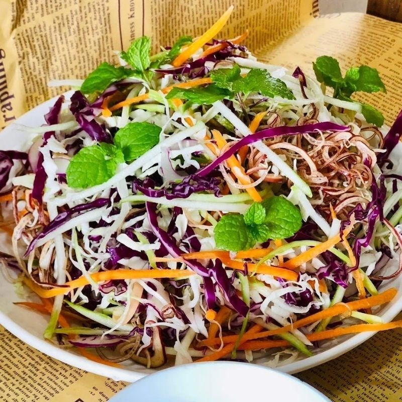 Sau khi thái sợ toàn bộ rau củ, bạn đem ngâm tất cả vào một thau nước muối loãng để trong 10 phút. Tiếp đó, ngâm vào thau nước đá lạnh trong vòng 10 phút để rau củ giữ được độ giòn tươi ngon.
