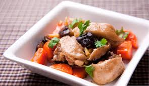 THỊT GÀ,THỊT LỢN OM NẤM HƯƠNG, MỌC NHĨ, CÀ RỐT.