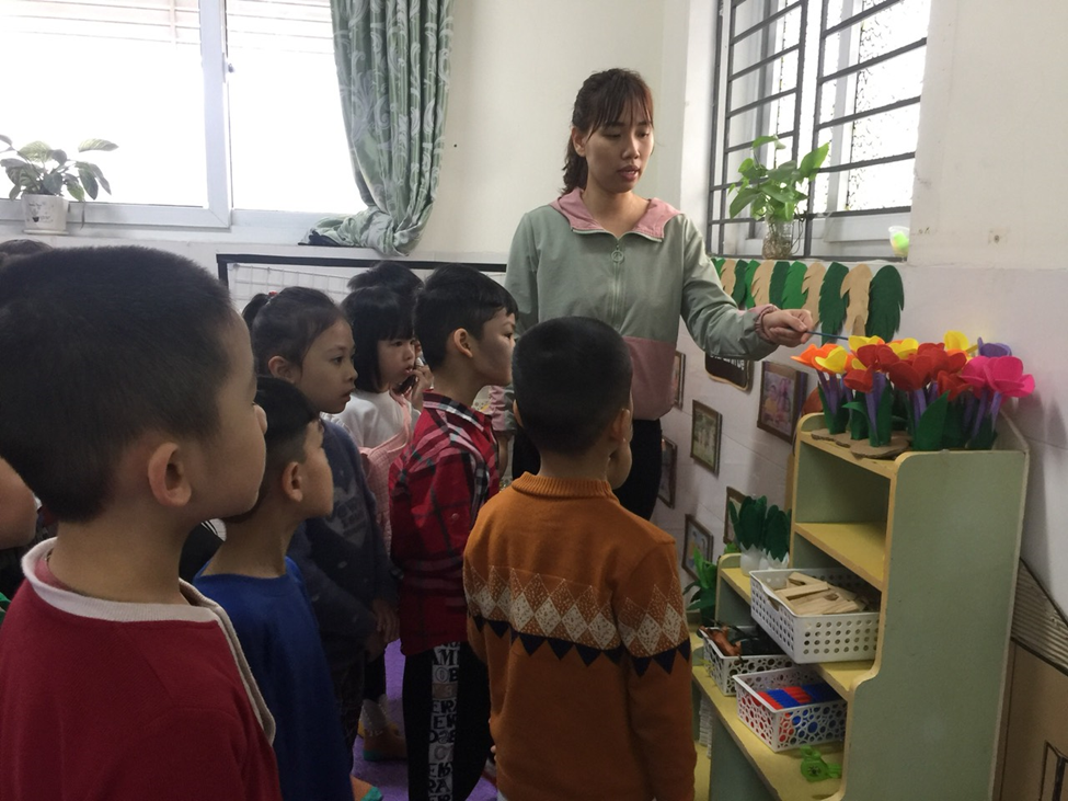 Giờ học diễn ra với sự hăng say, hào hứng của bạn nhỏ. Với sự giải thích cụ thể hướng dẫn chi tiết tận tình của cô giáo, các con đã nhận biết được số 9 và chơi các trò chơi một cách rất nhanh và chính xác.