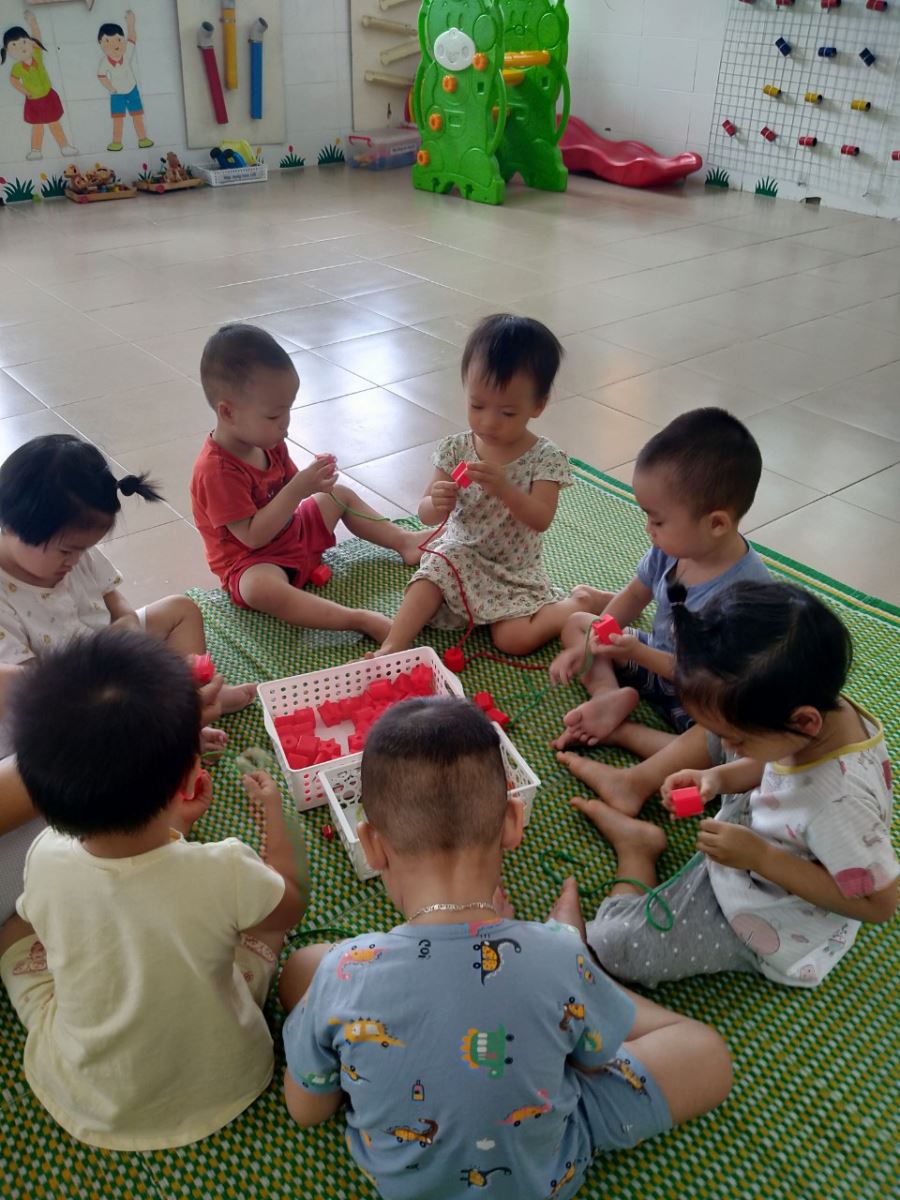 Ảnh: Trẻ về nhóm xâu vòng