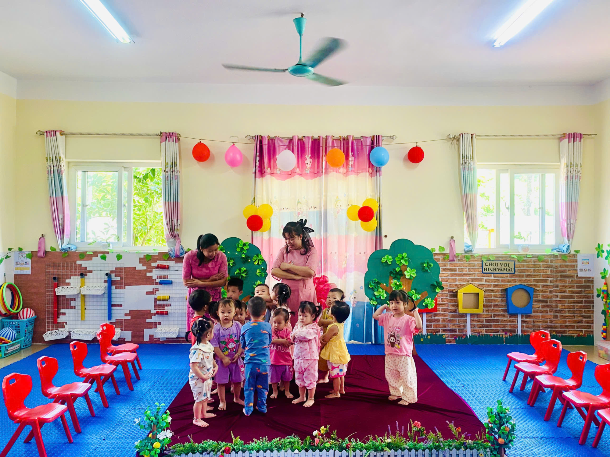 Các bé lớp Nhà trẻ D2 rất hứng thú với giờ học, các bé mạnh dạn, tự tin, tich cực đứng lên hưởng ứng vận động theo nhạc bài hát " Giấu tay". Trẻ biết thể hiện những vận động, cử chỉ, điệu bộ của mình để mô phỏng nội dung bài hát