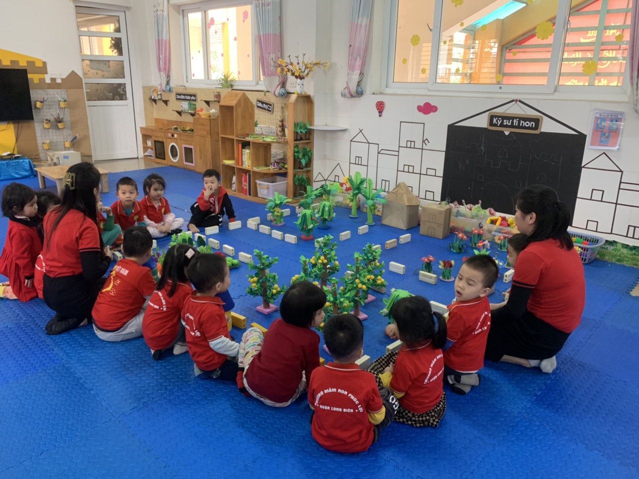 Ví dụ: Chủ đề thực vật tuần 1: Góc xây dựng: Trẻ đóng các bác nông dân, những việc làm của trẻ thể hiện rất cần cù, cặm cụi làm công việc của người nông dân đồng thời trẻ biết hợp tác với nhau để thực hiện một công việc được giao.