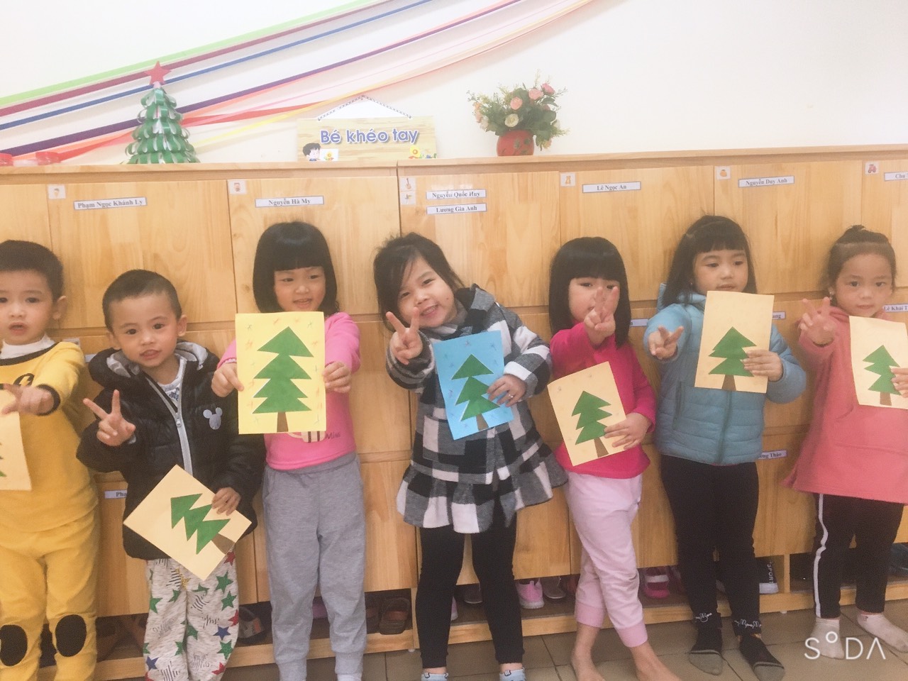 Thông qua hoạt động tạo hình giúp hình thành ở trẻ các đức tính tốt như: Yêu thích cái đẹp, mong muốn tạo ra cái đẹp.Về thể chất lao động giúp trẻ phát triển các khớp ngón tay, cổ tay,các cơ bàn tay. Giúp trẻ ngày càng khéo léo linh hoạt. Về thẩm mỹ, giúp trẻ hình thành xúc cảm và thị hiếu thẩm mỹ khi trẻ tạo hình. Và sau đây là một số hình các bé lớp MGN B1 trong giờ tạo hình Dán cây thông noel: