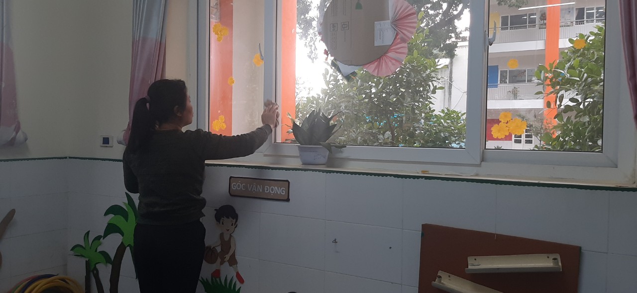 Với thời tiết nồm ẩm và thường xuyên thay đổi, sẽ ảnh hưởng không nhỏ đến sức khỏe của trẻ. Ban giám hiệu luôn đôn đốc nhắc nhở các khối, phòng ban chú ý vệ sinh sạch sẽ khuôn viên trường lớp. Để đảm bảo không gian trường lớp sạch đẹp. Phòng tránh các loại dịch bệnh cho trẻ, đảm bảo môi trường thoáng sạch cho trẻ hoạt động, phụ huynh tin tưởng, yên tâm gửi con.