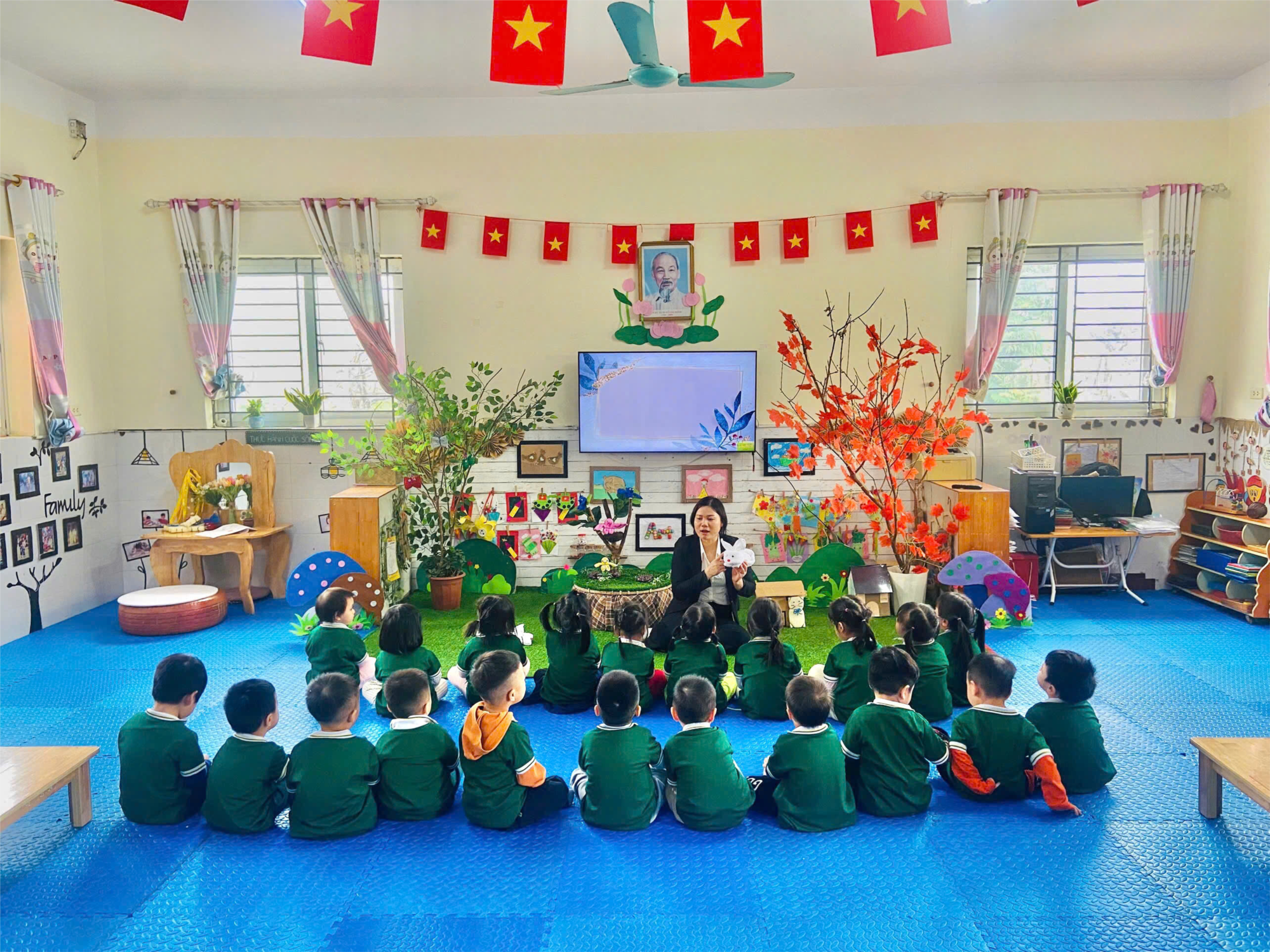Nhằm phát triển khả năng sáng tạo và rèn luyện kỹ năng khéo léo cho trẻ, lớp Mẫu giáo bé C1 đã tổ chức giờ hoạt động tạo hình với Đề tài “Làm con vật từ khăn vải sợi và mút xốp” Trong giờ học, trẻ được cô giáo giới thiệu các nguyên vật liệu gần gũi, an toàn như khăn vải sợi, mút xốp nhiều màu sắc, mắt nhựa, dây buộc… Dưới sự hướng dẫn nhẹ nhàng của cô, các bé đã biết cách gấp, cuộn, buộc và trang trí để tạo thành những con vật ngộ nghĩnh như con thỏ, con chim, con bướm, con mèo.Mỗi sản phẩm đều mang nét sáng tạo riêng, thể hiện trí tưởng tượng phong phú của trẻ, hoạt động không chỉ giúp trẻ rèn luyện kỹ năng vận động tinh, khả năng phối hợp tay – mắt mà còn phát triển tư duy thẩm mỹ, tính kiên nhẫn và sự tự tin khi hoàn thành sản phẩm của mình. Các bé rất vui khi được giới thiệu sản phẩm với cô và các bạn, tạo nên không khí lớp học sôi nổi, thân thiện.Giờ học tạo hình khép lại trong không khí vui tươi, để lại nhiều niềm vui và những sản phẩm đáng yêu do chính tay các bé làm ra.