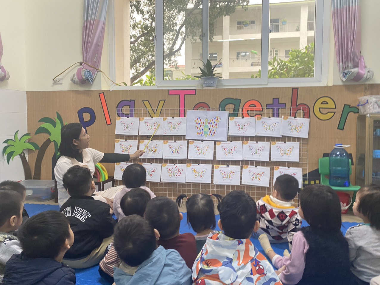 Thông qua hoạt động quan sát vật mẫu, tranh mẫu gợi ý cô đã cung cấp cho trẻ vốn hiểu biết về thế giới cũng như sự vật xung quanh. Việc quan sát tìm hiểu về con bướm đã giúp trẻ nhận ra các đặc điểm, hình dáng, màu sắc, cấu trúc, tên gọi, tỷ lệ, sự sắp xếp trong không gian…nhận ra được những nét độc đáo của sản phẩm.