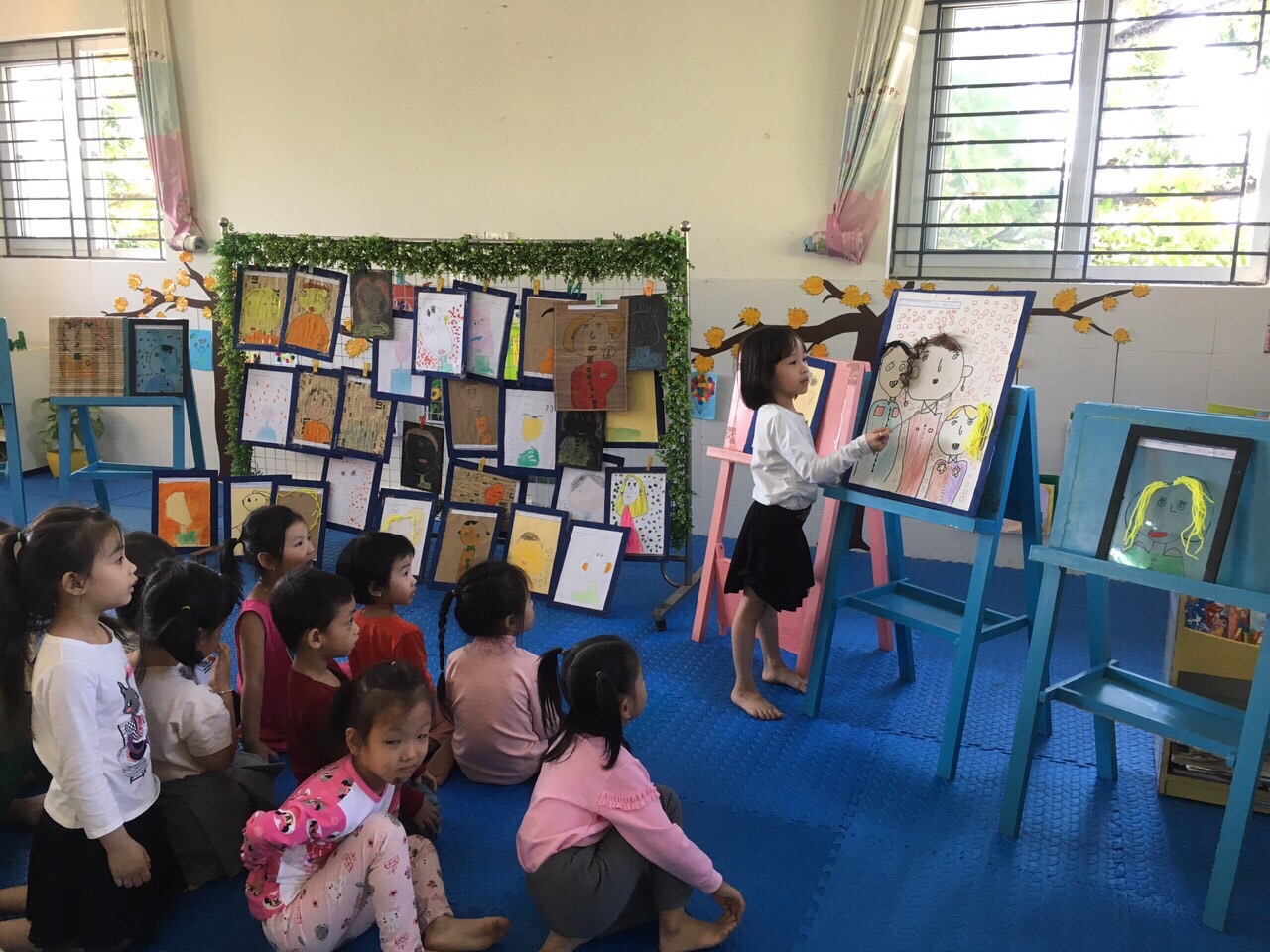 Phát triển thẩm mỹ là 1 trong 5 lĩnh vực giáo dục toàn diện cho trẻ mầm non. Với mỗi trẻ em nói chung, trẻ mầm non nói riêng đều có tâm hồn nhạy cảm với thế giới xung quanh, thế giới xung quanh chứa đựng bao điều mới lạ hấp dẫn. Trẻ thường tỏ ra dễ xúc cảm với cảnh vật xung quanh, trẻ dễ bị cuốn hút trước cảnh vật có nhiều màu sắc, hay 1 bông hoa đẹp, bức tranh sinh động, đồ chơi ngộ nghĩnh… Với đặc điểm như vậy nên năng khiếu nghệ thuật thường được nảy sinh ngay từ tuổi ấu thơ. Vì vậy việc giáo dục thẩm mỹ cần được bồi dưỡng ngay từ tuổi mẫu giáo để ươm trồng những tài năng nghệ thuật cho tương lai. Nội dung hoạt động tạo hình trong trường mầm non là 1 phương tiện phát triển thẩm mỹ cho trẻ rất hữu hiệu. Thông qua hoạt động tạo hình giúp trẻ phát triển các chức năng tâm lí như khả năng tri giác các sự vật hiện tượng xung quanh, từ đó buộc trẻ phải tư duy và quá trình đó làm phát triển óc tưởng tượng sáng, ham muốn tạo ra cái đẹp. Đây là yếu tố cần thiết góp phần giúp trẻ phát triển toàn diện nhân cách. Hoạt động tạo hình của trẻ thực sự là môt giờ hoạt động sáng tạo nghệ thuật thực thụ. Quá trình hoạt động và sản phẩm hoạt động tạo hình của trẻ thể hiện các đặc điểm của một nhân cách đa dạng được hình thành . Hoạt động tạo hình tạo nên những điều kiện thuận lợi nhất cho sự phát triển của cảm giác, tri giác thẩm mĩ, việc quan sát, tìm hiểu sự vật , hiện tượng giúp trẻ nhận ra các đặc điểm thẩm mĩ, màu sắc, cấu trúc, tỉ lệ, sự xắp xếp không gian,… Hoạt động tạo hình hình thành ở trẻ khả năng nhận thức thẩm mĩ, hình thành thái độ thẩm mĩ trước vẻ đẹp của thế giới xung quanh. Giúp trẻ có những điều kiện bộc lộ cảm xúc, tình cảm của mình đối với những gì được thể hiện trong qúa tình tạo hình. Năm học 2019-2020, chuyên đề đi sâu vào lĩnh vực phát triển thẩm mỹ ở hai bộ môn tạo hình và âm nhạc. Được sự chỉ đạo và nắm bắt được tình chung , ban giám hiệu trường mầm non Phúc Lợi đã tổ chức tập huấn và đưa ra các hình thức thi về chuyên môn cho giáo viên qua các tiết hội giảng chào mừng ngày 20-11 nói chung và lớp mẫu giáo lớn A3 chúng tôi nói riêng. Một số hình ảnh của tiết tạo hình” Vẽ chân dung người thân trong gia đình”