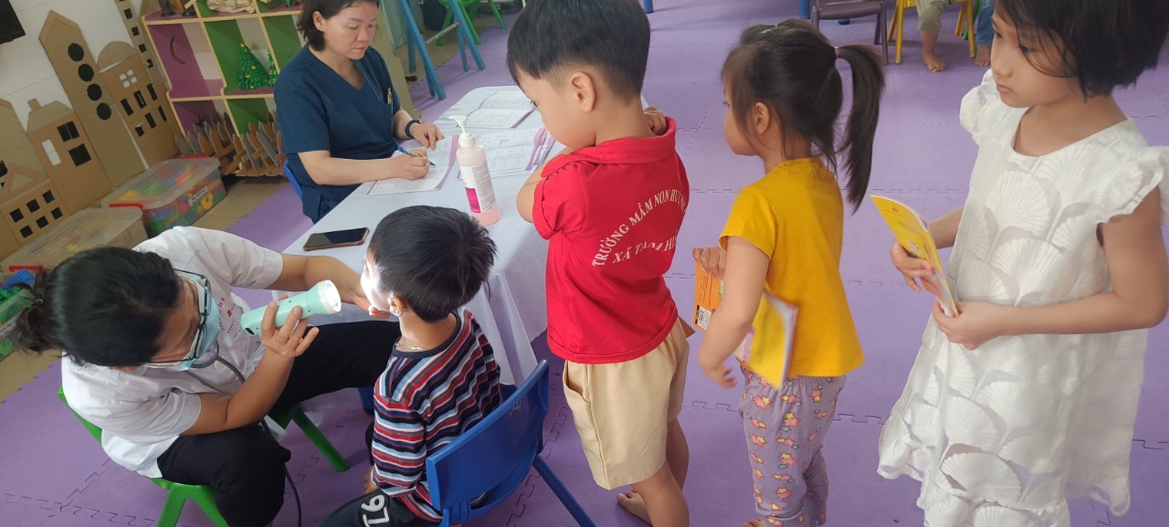 Khám sức khoẻ định kỳ cho các cháu là hết sức thiết thực và ý nghĩa thông qua việc khám sức khỏe định kỳ cho trẻ đã góp phần không nhỏ vào việc nâng cao nhận thức cho phụ huynh về ý thức phòng chống một số bệnh thường gặp ở lứa tuổi mầm non – Tiểu học và cũng qua hoạt động này đã đem lại sự phấn khởi, tin tưởng trong các bậc phụ huynh về một môi trường giáo dục an toàn và thân thiện.