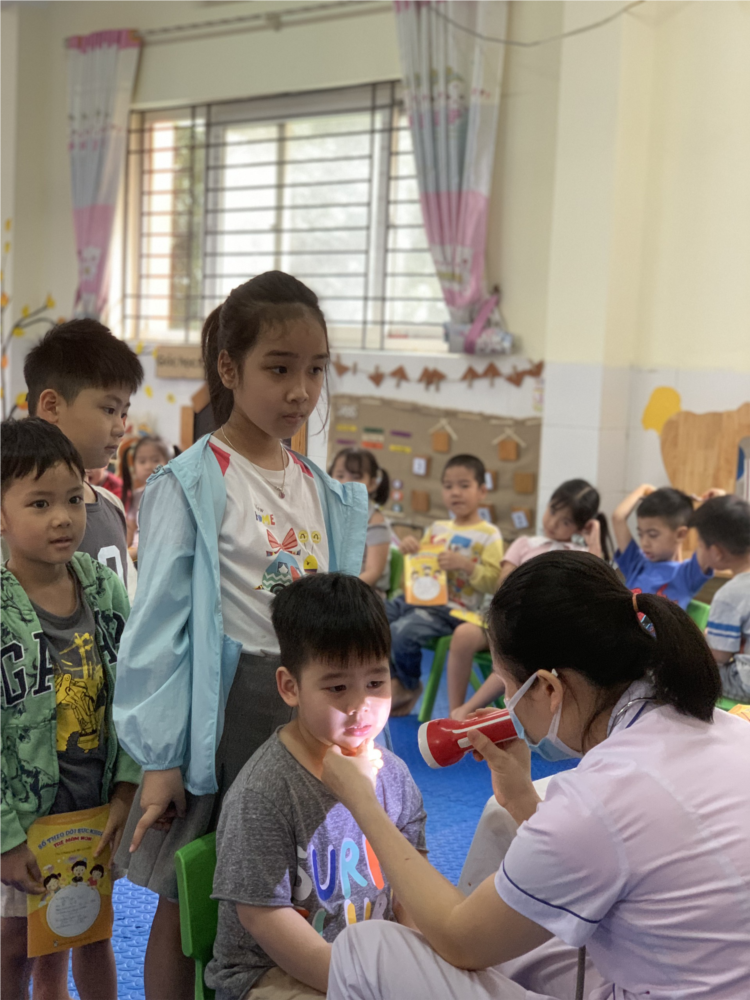 Trường mầm non Phúc Lợi phối hợp với trạm y tế phường tổ chức khám sức khỏe định kì cho lớp mẫu giáo lớn A1