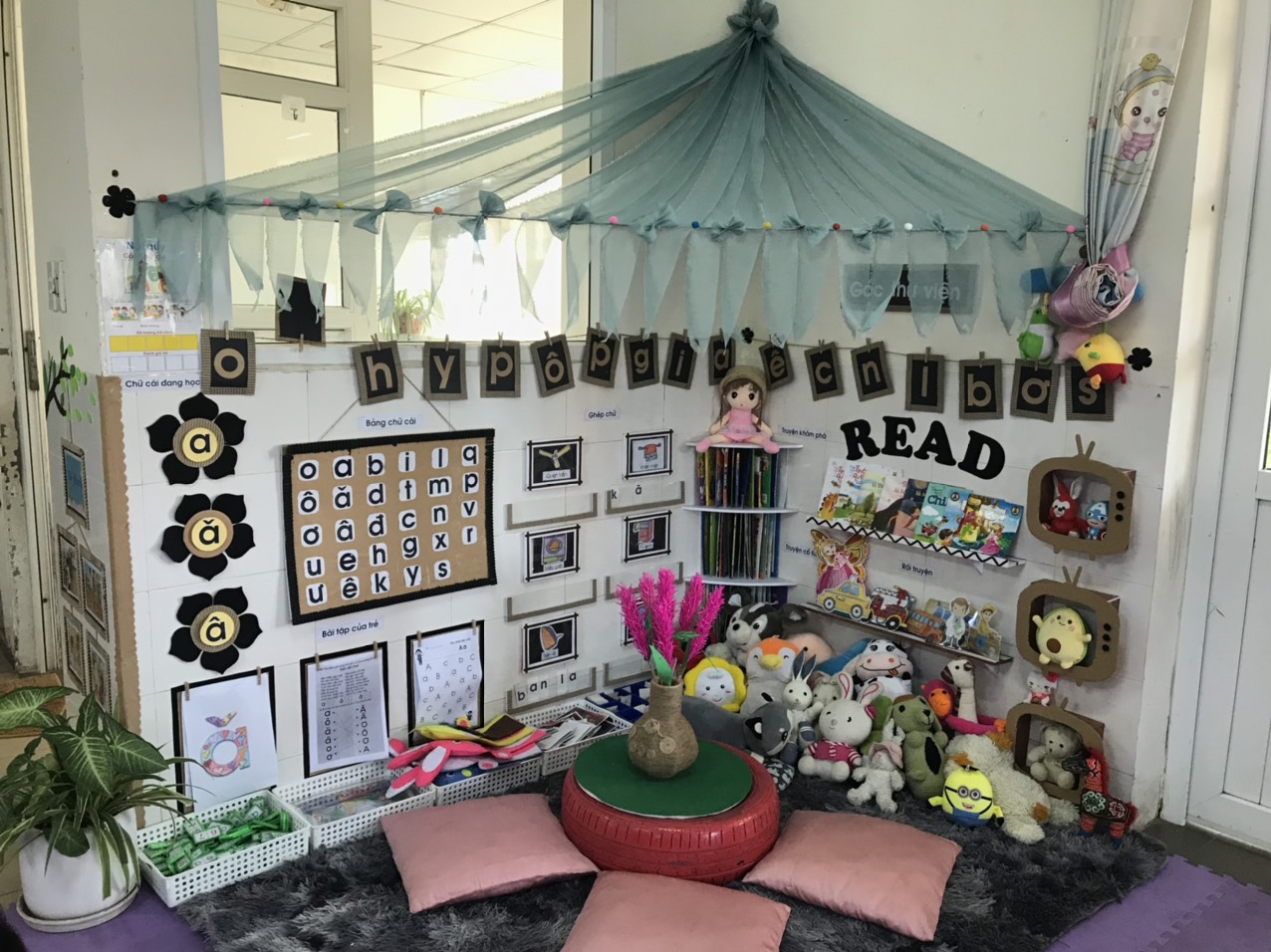 Các trang thiết bị, đồ dùng, đồ chơi, không gian trong lớp, sảnh trước, sảnh sau, khu vực vệ sinh để vục vụ cho việc tổ chức các hoạt động, sinh hoạt hàng ngày của trẻ đều được xây dựng theo hướng lấy trẻ làm trung tâm nhằm mục đích phát triển toàn diện về: thể chất, trí tuệ, thẩm mỹ, đạo đức xã hội. Thỏa mãn nhu cầu nhận thức, mở rộng hiểu biết của trẻ, kích thích trẻ hoạt động tích cực, sáng tạo. Từ cách trang trí đó mà trẻ lớp tôi hoạt động tích cực, hứng thú, say mê, không còn nhàm chán, dập khuôn máy móc như trước nữa.