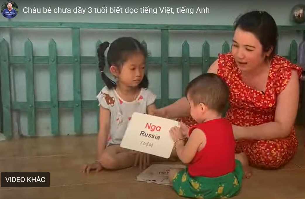 Tại nhà, cháu Duy đang ngồi xem các thẻ học với mẹ. Khi chị Quỳnh đưa tấm thẻ học có in chữ tiếng Việt “Quả dâu tây”, cháu đọc đúng chữ, đồng thời chỉ tay vào chữ tiếng Anh bên dưới rồi phát âm từ tiếng Anh khá rõ. Lần lượt, hơn 50 thẻ đọc được cháu Duy đọc chính xác các chữ tiếng Việt và tiếng Anh.