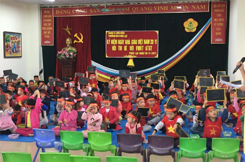 Dưới sự dẫn dắt của 2 MC, cô giáo Hương Lý và Minh Thúy đã giúp các bé khối mẫu giáo lớn trải qua rất nhiều câu hỏi của Hội thi “Rung chuông vàng” với chủ đề Bé với VMĐT-ATTG” , góp phần đưa Hội thi đến thành công rực rỡ.