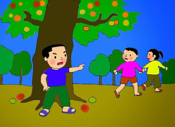 - Này chúng mày, vườn này là của tao, tao đã mua từ trước. Cây táo này của tao, chúng mày đi chỗ khác mà chơi. Cấm không được đến đây nữa.